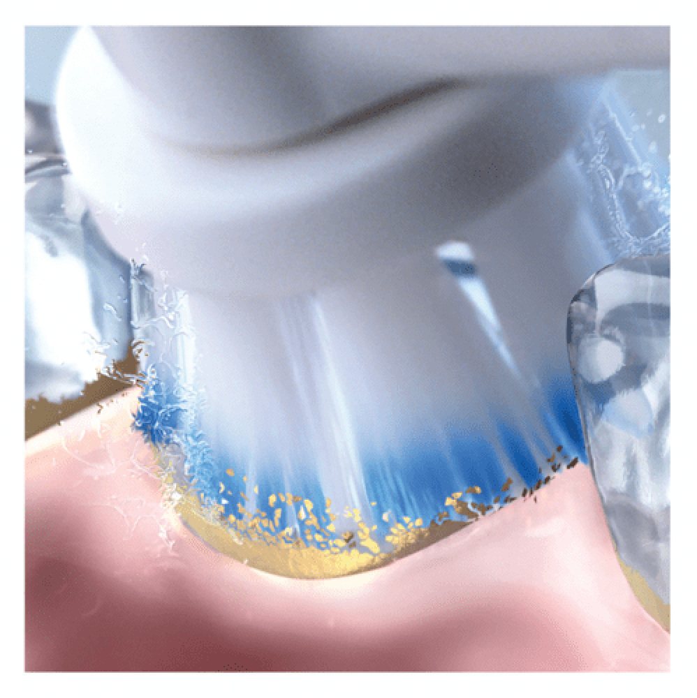 لها شعيرات مستديرة لتنظيف المناطق التي يصعب الوصول إليها وتنشيط اللثة.