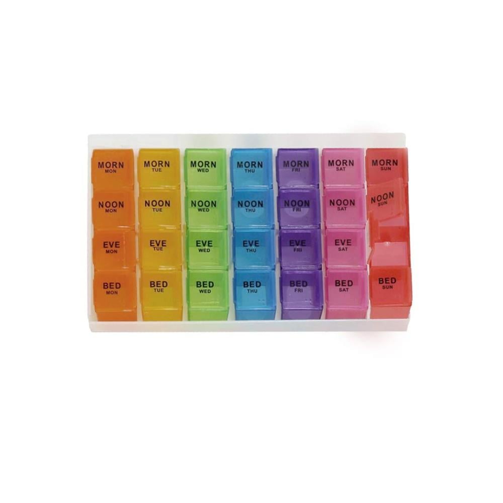 - يحتوي الصندوق على 28 مقصورة مختلفة، مما يمكنك من تخزين أدويتك بكفاية لمدة أسبوع كامل.