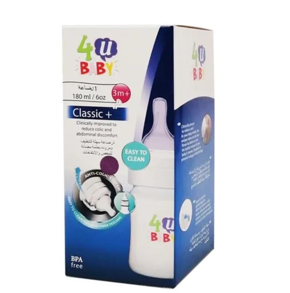 · حلمة فور يو بيبي مزودة بصمام يسمح بدخول الهواء إلى الرضاعة بدلاً من دخوله إلى المعدة مما يجعلها مضادة للمغص والإنتفاخات.