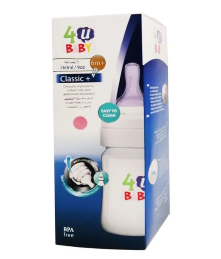 · حلمة فور يو بيبي مزودة بصمام يسمح بدخول الهواء إلى الرضاعة بدلاً من دخوله إلى المعدة مما يجعلها مضادة للمغص والإنتفاخات.