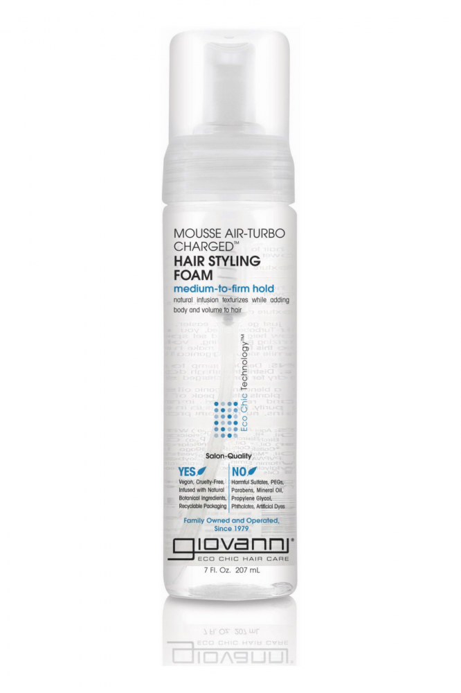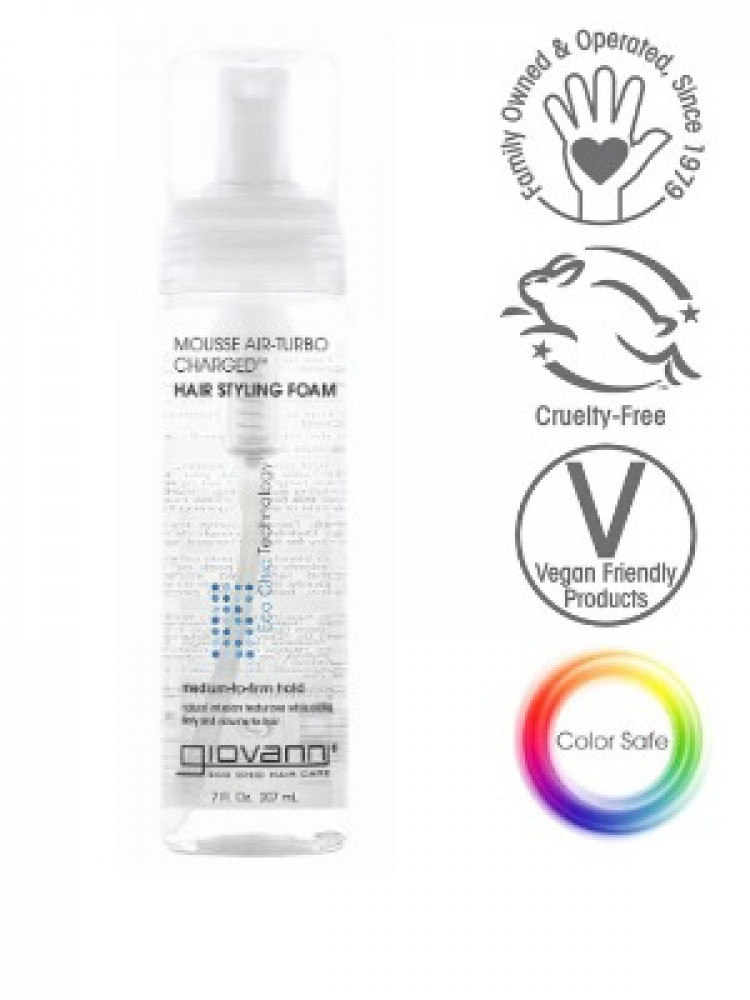 أصبح أسلوبك أفضل وأسهل وأكبر! رغوة تصفيف الشعر Eco Chic Natural Mousse Air-Turbo Charged تصنع شعرك إلى آفاق جديدة مع قوة بقاء مذهلة. إنه غني بالنباتات العضوية المعتمدة لإضافة الملمس واللمعان والقوام المذهل. قم ببناء أسلوب ميل مرتفع يستمر طوال اليوم - بشكل طبيعي. جيوفاني خالي من القسوة ومصنوع في الولايات المتحدة الأمريكية