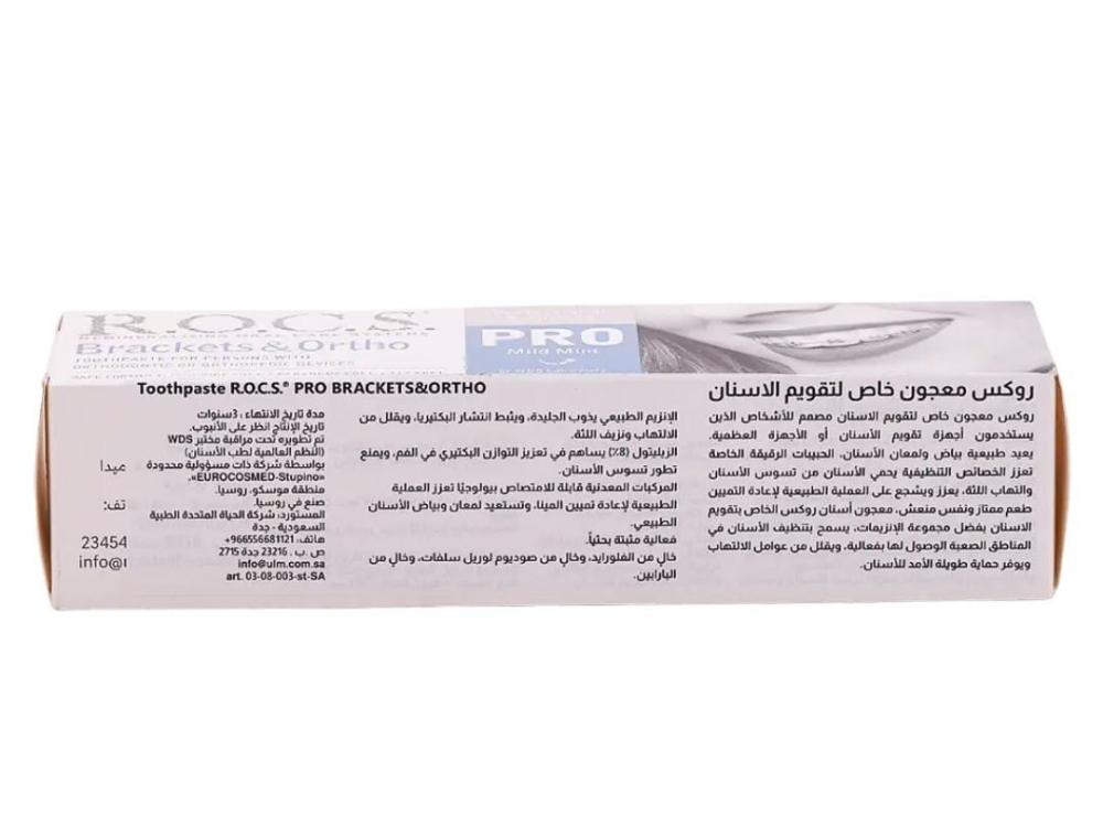 معجون أسنان روكس خاص بتقويم الأسنان هو المنتج المثالي للأشخاص الذين يستخدمون التقويم. فهو يحتوي على تركيبة فريدة من نوعها تساعد على تقليل الالتهابات والتهاب اللثة الناتج عن التقويم، كما يحارب التسوس ويحمي الأسنان من التآكل. يتميز هذا المعجون برائحته اللطيفة وطعمه اللذيذ، ويترك فمك نظيفًا ومنتعشًا طوال اليوم. جربوه الآن وستشعرون بالفرق الواضح في صحة ونظافة أسنانكم