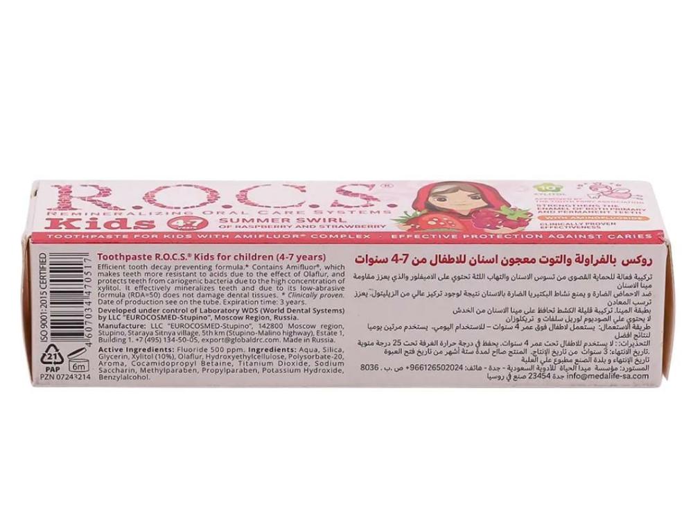 هل تبحث عن معجون أسنان يحبه أطفالك؟ إذاً، روكس معجون اسنان للأطفال توت وفراولة هو الخيار المثالي لك. يحتوي هذا المعجون على نكهتي التوت والفراولة اللذيذة التي ستحبها أطفالك، كما أنه يحتوي على مكونات طبيعية وفعالة للعناية بأسنانهم وحمايتها من التسوس. بحجم 35 مل، يسهل حمله واستخدامه في أي مكان. جرب روكس معجون اسنان للأطفال توت وفراولة اليوم واحصل على ابتسامات نظيفة وصحية لأطفالك.