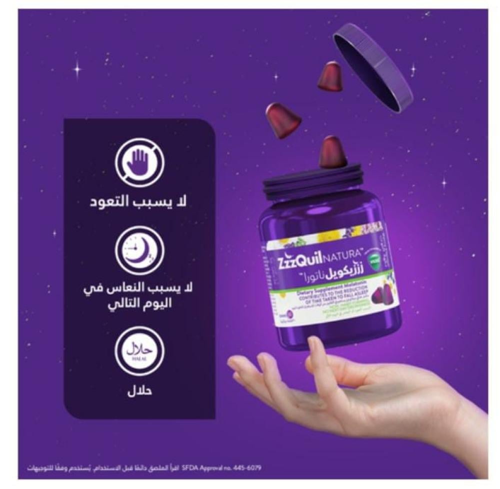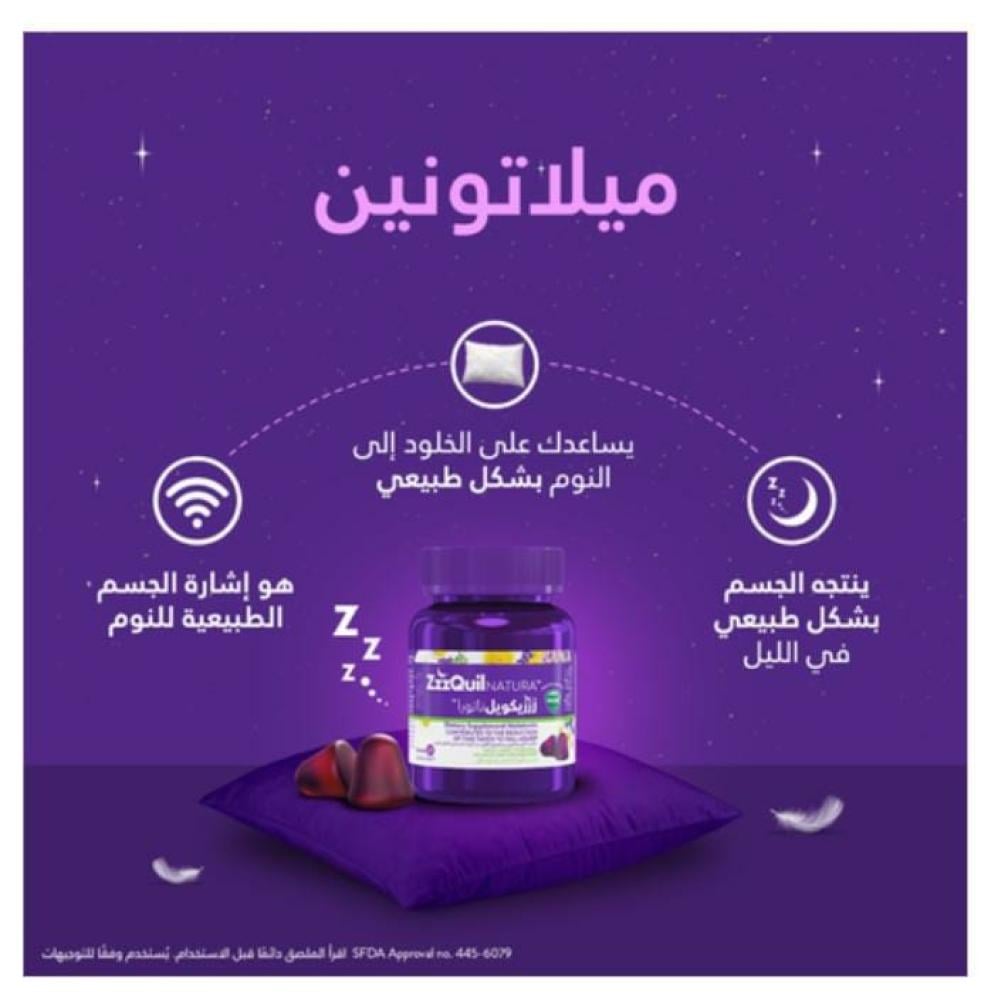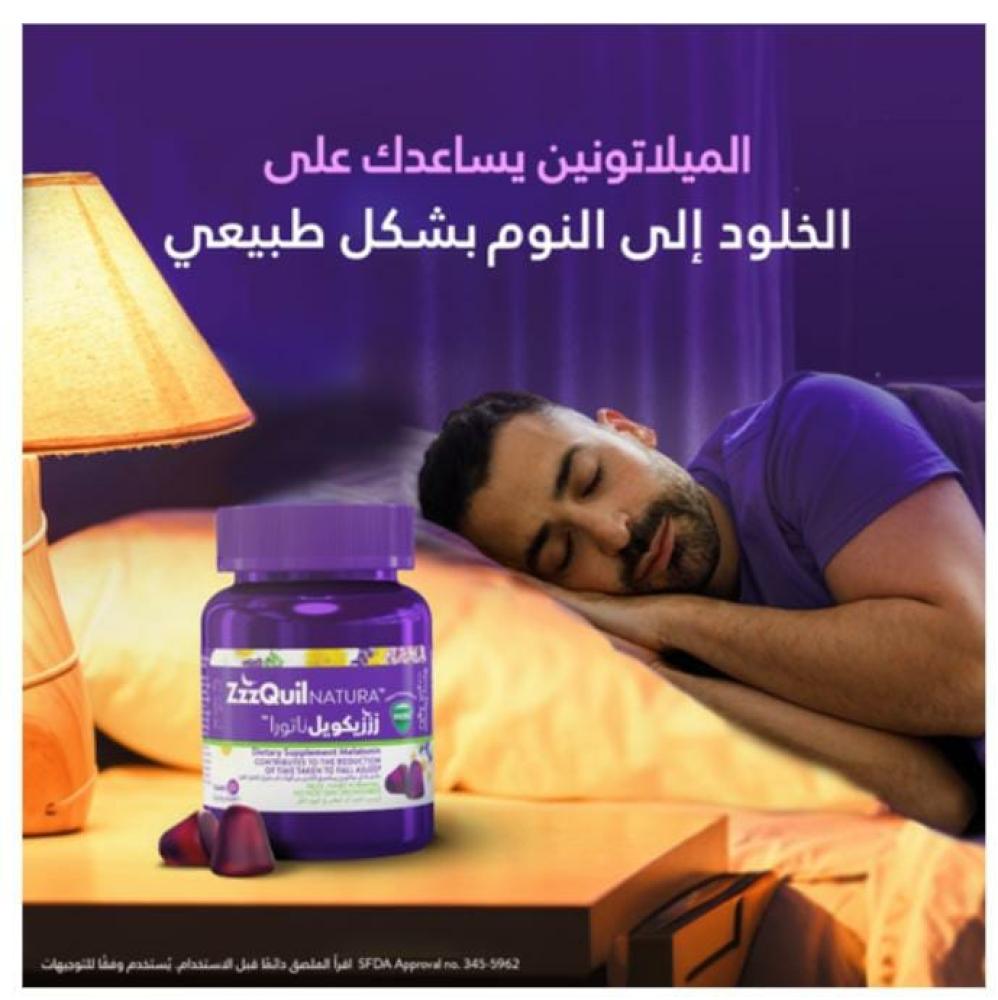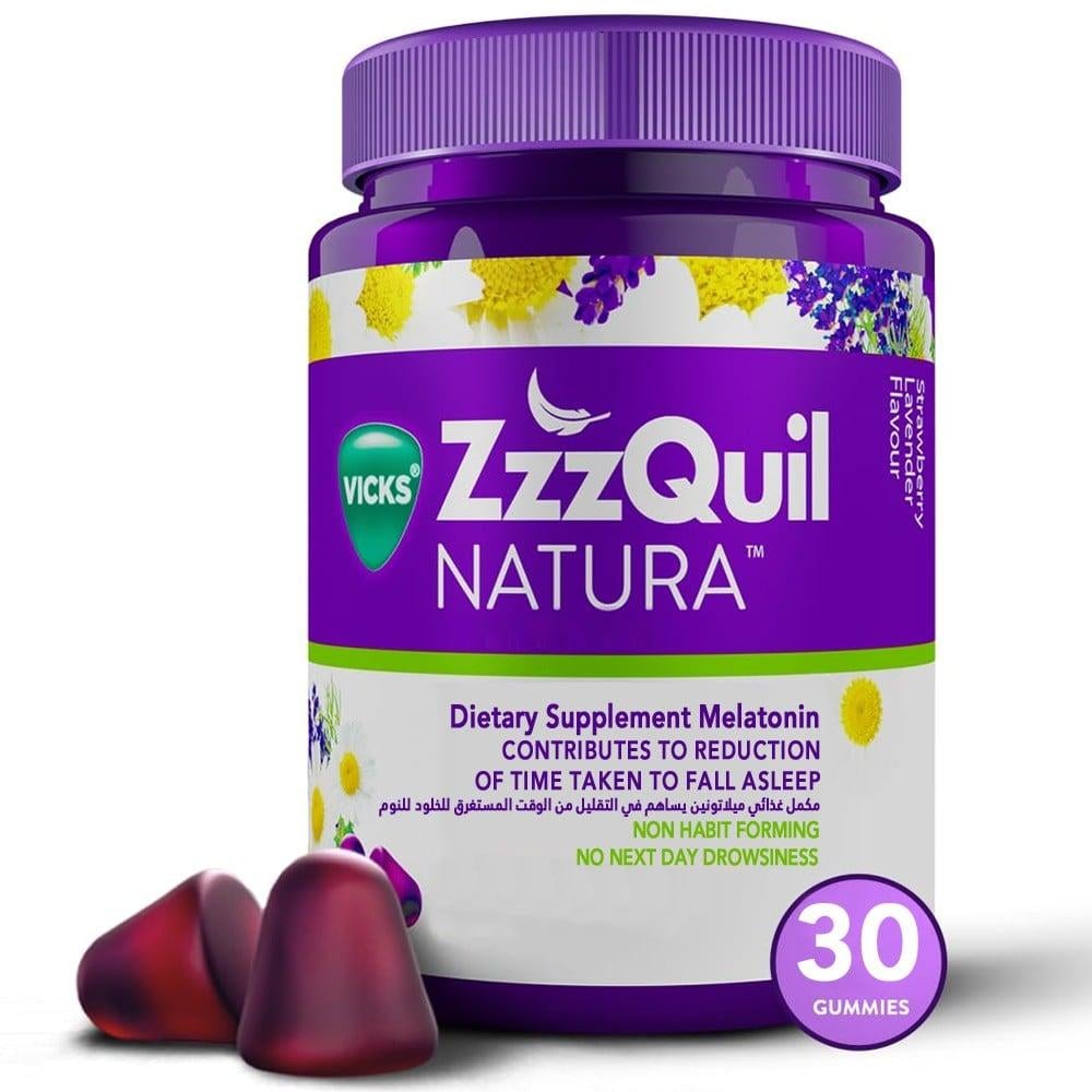 تساعدك على النوم بسرعة: تحتوي علكات Vicks Zzzquil Natura على جرعة مثالية 2 ملغ من الميلاتونين، التي تهدف إلى تكملة الإنتاج الطبيعي لجسمك لتغفو بسرعة.