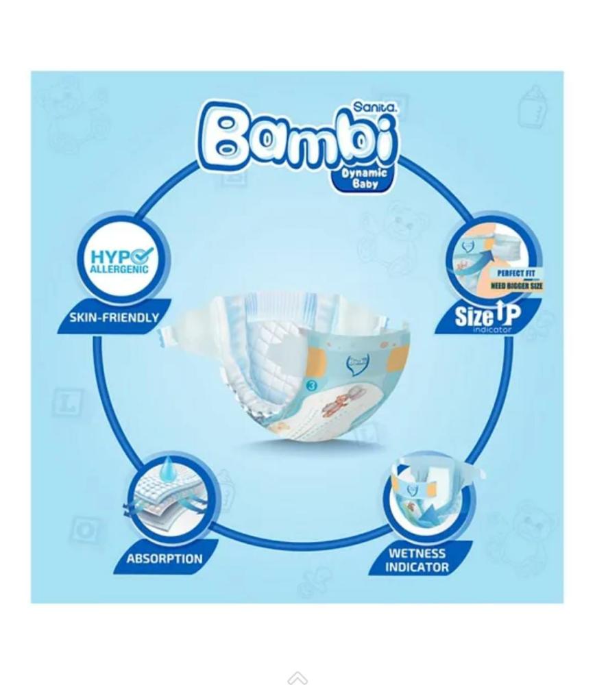 - أهمّ شي بالنسبة للأم هو إحاطة طفلها بالحنان والاهتمام! سانيتا بامبي الآن مضغوط أكثر لإمتصاص أفضل، جفاف فائق و تكيَف مثالي مع جسم الطفل