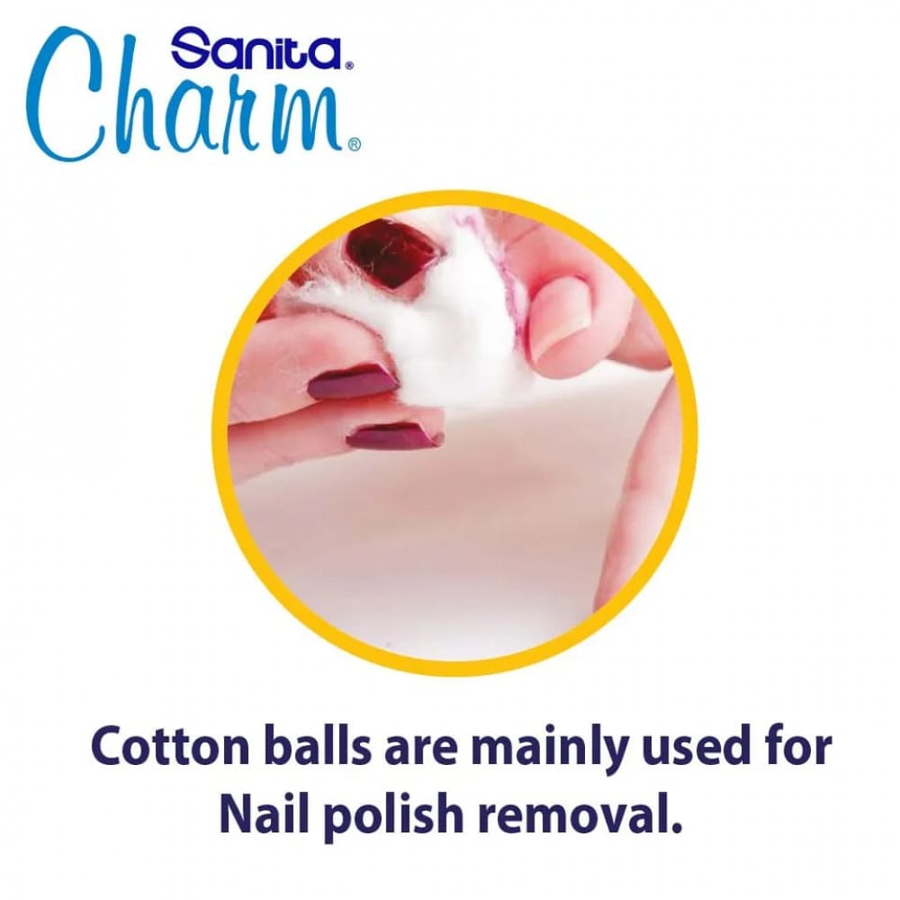 كرات القطن الملونة من سانيتا شارم تستخدم لإزالة طلاء الأظافر والماكياج.