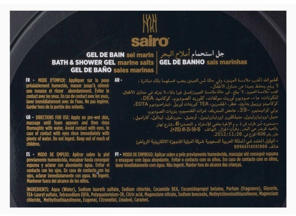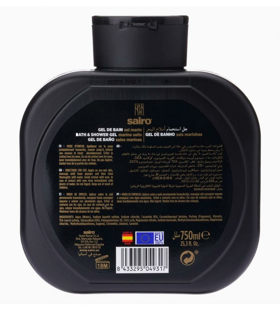 جل الاستحمام سايرو مارين أملاح هو نسيج كريمي يغلف جسمك برغوة رقيقة. يجعل بشرتك ناعمة وله رائحة قوية من ملح البحر. مناسب للتنظيف والنظافة اليومية للجسم. مناسب لجميع أنواع البشرة.
