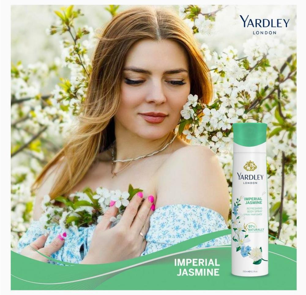 سبراي الجسم بالياسمين الامبراطوري للنساء ، برائحة الزهور مع الياسمين ورائحة زهر البرتقال من ياردلي لندن _ 150 مل Yardley