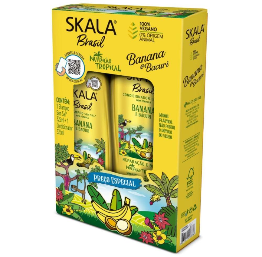 يغذي خط Skala Brasil Nutrition Tropical Banana وBacuri ألياف الشعر ويوصى به للشعر المجعد وسوء التغذية. الباكوري هي ثمرة شجرة فاكهة من شرق الأمازون، ولها قوة ترطيب قوية، وقادرة على تعزيز إعادة شحن الطاقة، وتغذية الشعر وضمان صحته.