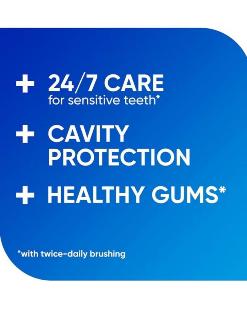 تعمل معاجين سنسوداين التي تحتوي على الفلوريد الستانوي كدرع لحماية الجزء الداخلي اللين المكشوف من السن والذي يسمى عاج الأسنان. يساعد هذا الدرع على منع المحفزات ، مثل الصودا الباردة أو الحلويات أو الحلوى الحامضة ، من الوصول إلى الأعصاب داخل السن والتسبب في الألم. راحة سريعة في 3 أيام بالفرشاة مرتين يوميًا.