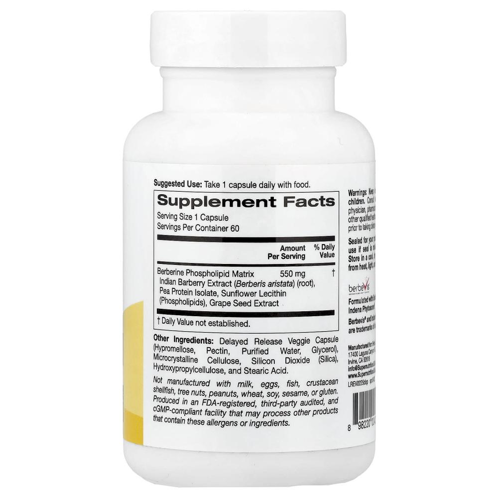 يحتوي منتج Super Nutrition® Berberine Phytosome® على مصفوفة Berberine Phospholipid الحاصلة على براءة اختراع، Berbevis®، والتي أثبتت فعاليتها في دعم عملية الأيض الصحي ومستويات السكر في الدم*.