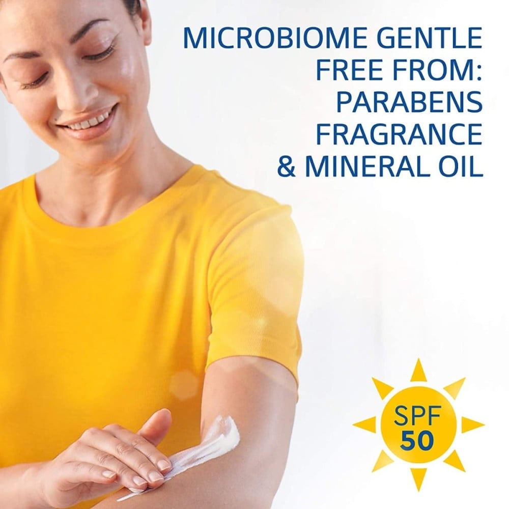 - عبارة عن تركيبة دهنية ذات حماية عالية جدًا مع عامل حماية من الشمس 50+ ضد الأشعة فوق البنفسجية الطويلة والمتوسطة والأشعة تحت الحمراء