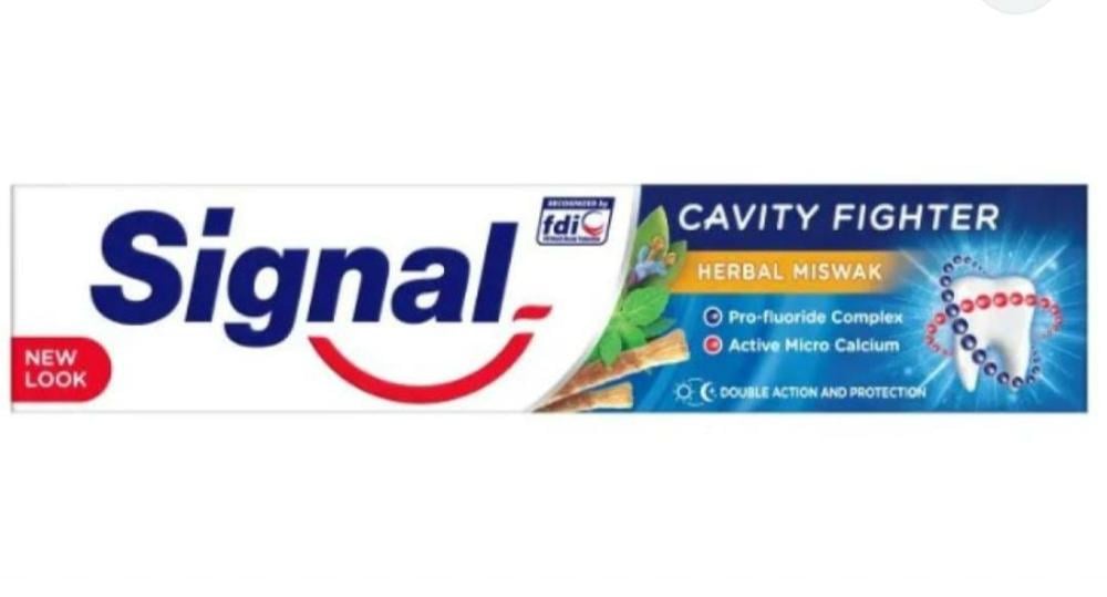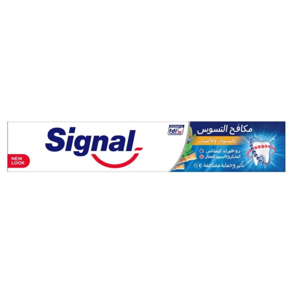 سيجنال هو معجون أسنان مكافح للتسوس يحتوي على مزيج فريد من المسواك والأعشاب الطبيعية. يأتي في عبوة سعة 120 مل.