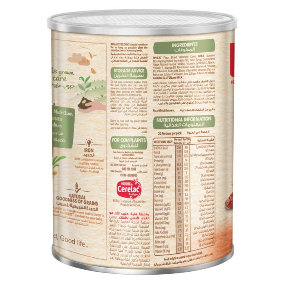 دقيق القمح، حليب مقشود مجفف، كراميل، سكروز، أولين النخيل، شراب التمر، زيت بذر اللفت منخفض الأيروسيك، زيت جوز الهند، زيت دوار الشمس، شراب السكر، فانيلين، مستنبت البيفيدوس، معادن وفيتامينات