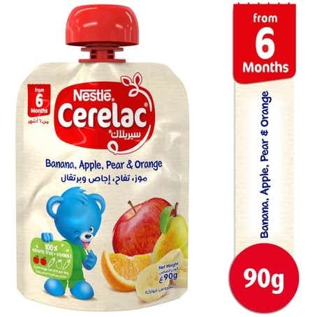 - نستله سيريلاك مهروس الفواكه ، مغذي ولذيذ، مصنوع من الموز ، التفاح ، الاجاص والبرتقال ، لمساعدة طفلك لتعرف على الفواكه من 6 أشهر.