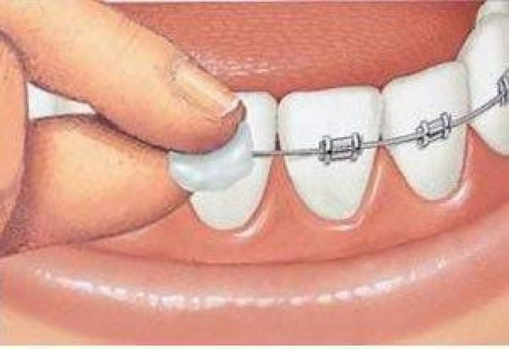 يغطي حواف أجهزة تقويم الأسنان والأقواس لتجنب الاحتكاك المؤلم.
