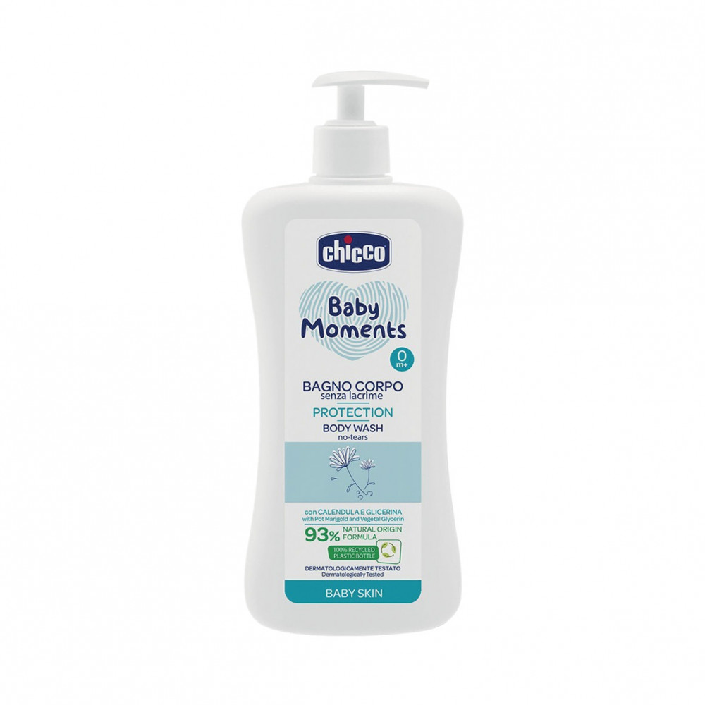 يتكون غسول الجسم Chicco Baby Moments من 93٪ من المكونات الطبيعية ، وهو غني بالمستخلص المطري من الآذريون والجلسرين النباتي لاحترام التوازن المائي الدهني للبشرة الرقيقة والحساسة لحديثي الولادة. تم اختباره من قبل أطباء الجلدية وطب العيون.