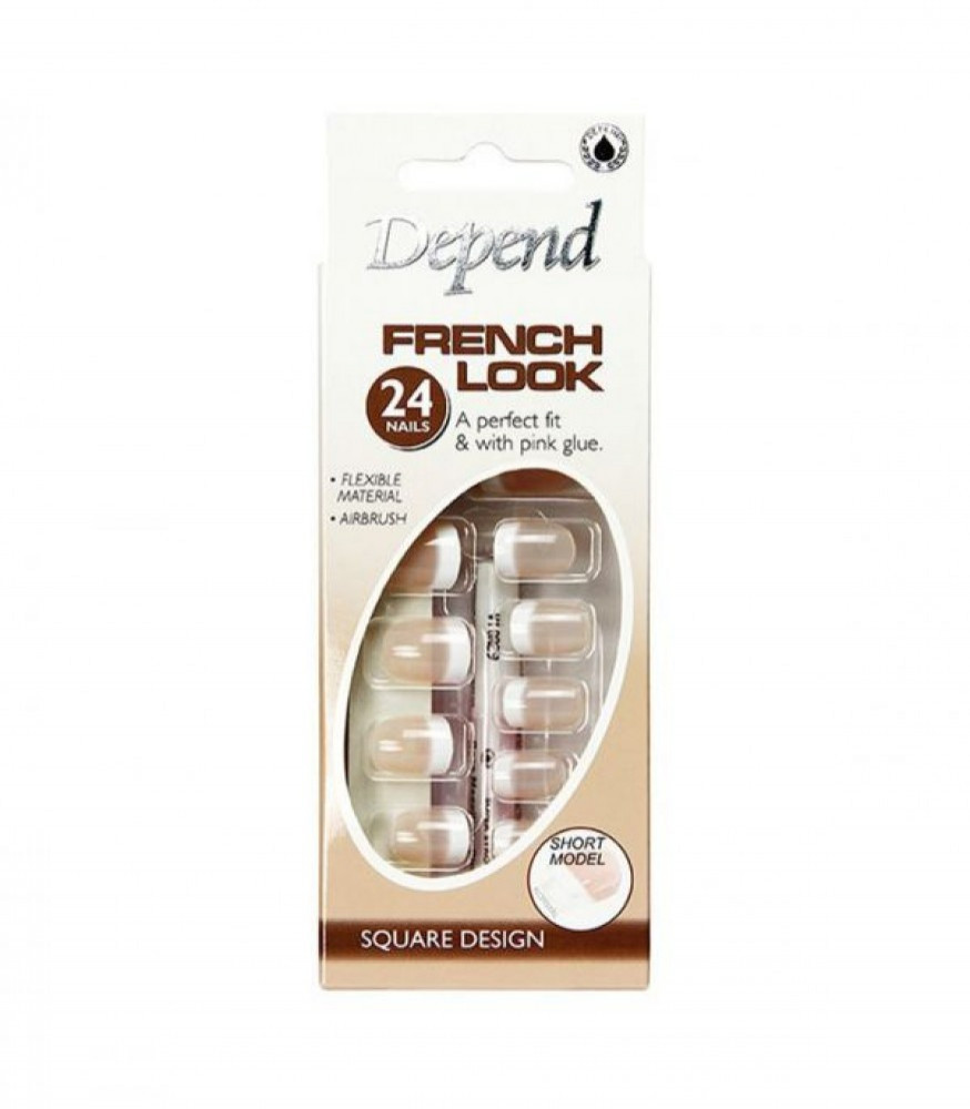 طقم أظافر صناعية فرينش لوك مع لاصق زهري مكون من 24 قطعة من ديبند 6301 بني وأبيض :