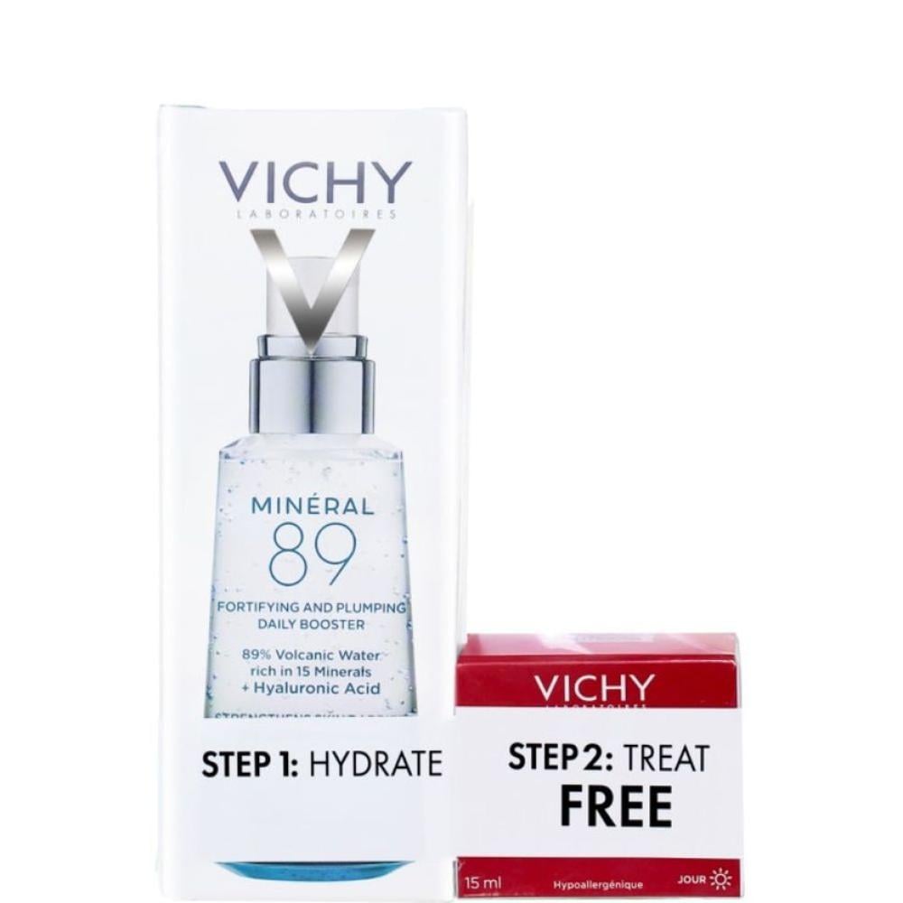 - ضعي مينيرال ٨٩ كخطوة أولى في روتينك اليومي على بشرة نظيفة ، ضعي قطرتين على أطراف الأصابع