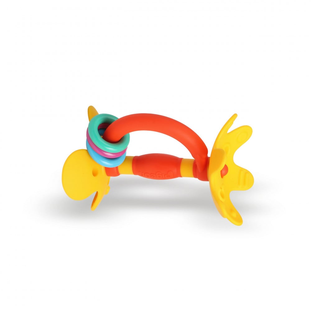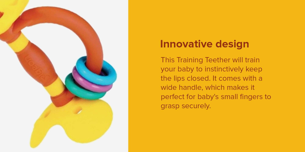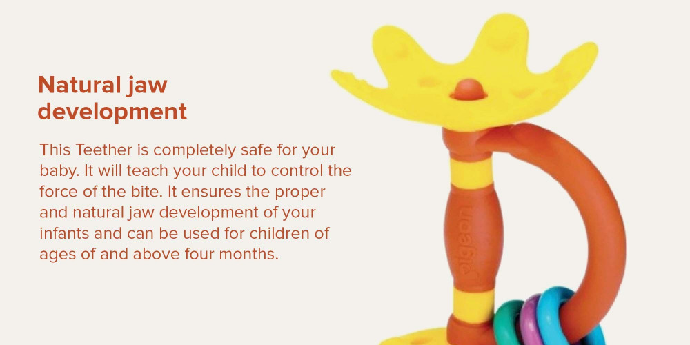 - تناسب راحة يد الطفل بمقبض سهل الإمساك ولوحة تسنين ثابتة