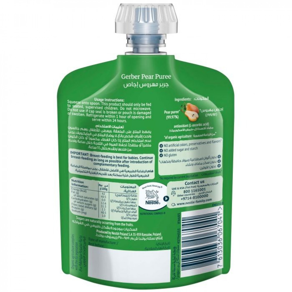 - يضغط المنتج على الملعقة.، ويعطى للأطفال وهم جالسين وتحت إشراف شخص بالغ. لا يوضع المنتج في الميكرويف.