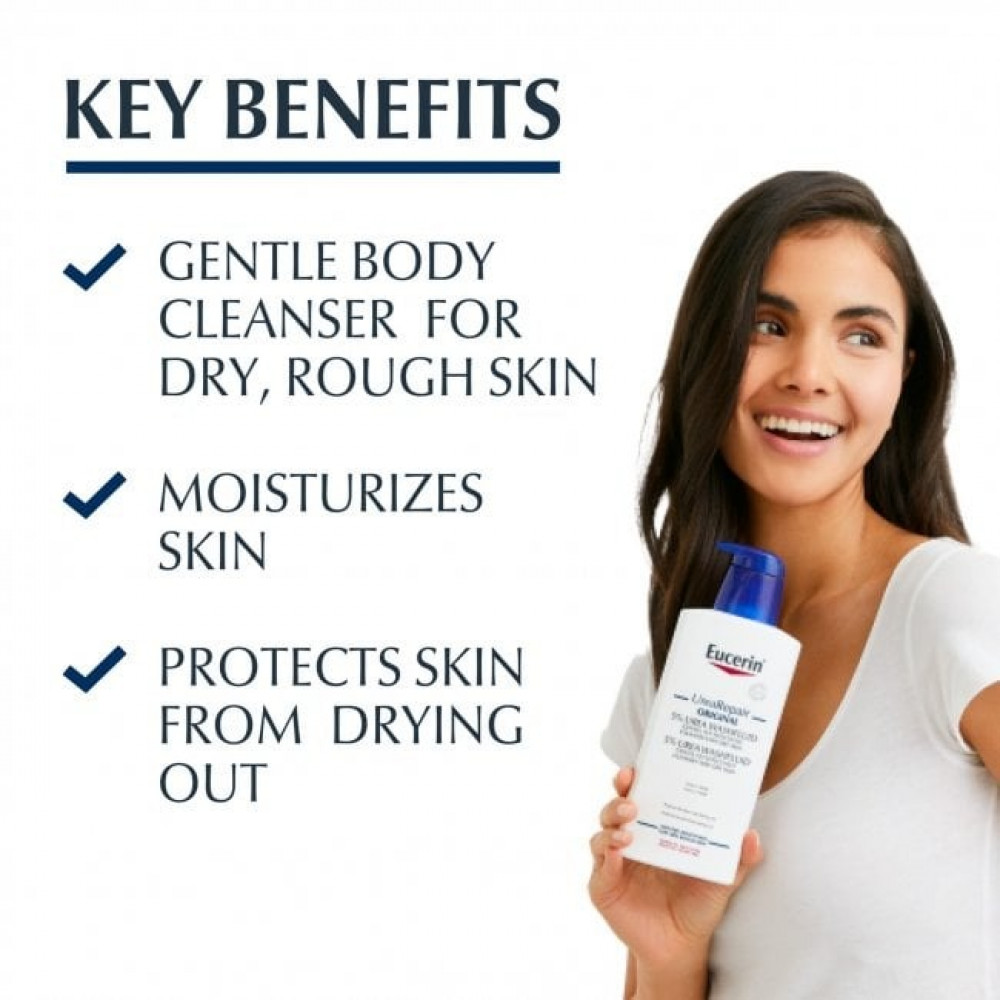 Eucerin UreaRepair Plus Body Wash 5% Ureaهو حل رائع لمن يعانون من بشرة جافة وجافة جدًا في أجسامهم. يعمل المنظف اللطيف على تنظيف البشرة بشكل فعال مع توفير الرطوبة الأساسية ومنع الجلد من الجفاف. علاوة على ذلك ، فإن عوامل التنظيف اللطيفة لطيفة بما يكفي للاستخدام اليومي وستبقي البشرة تشعر بالتغذية. ستساعد التركيبة أيضًا على تخفيف الحكة وعدم الراحة العامة المرتبطة عادةً بجفاف الجلد.