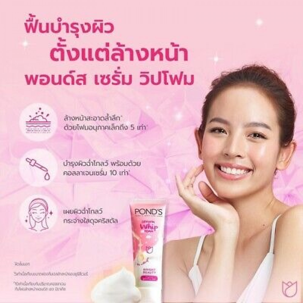- بللي يديك بالماء ثم أزيلي 2 سم من منتج POND’S Bright Beauty Whip Foam في يديك.