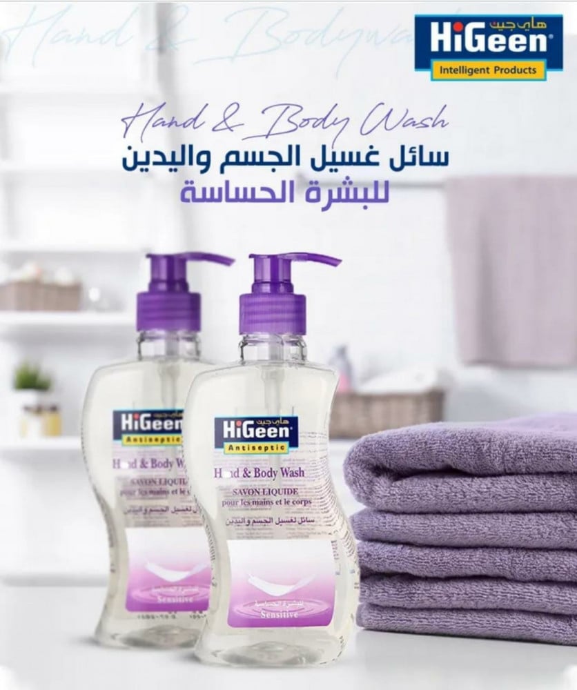 غسول سائل للجسم واليدين للبشرة الحساسة من هاي جين 500مل :