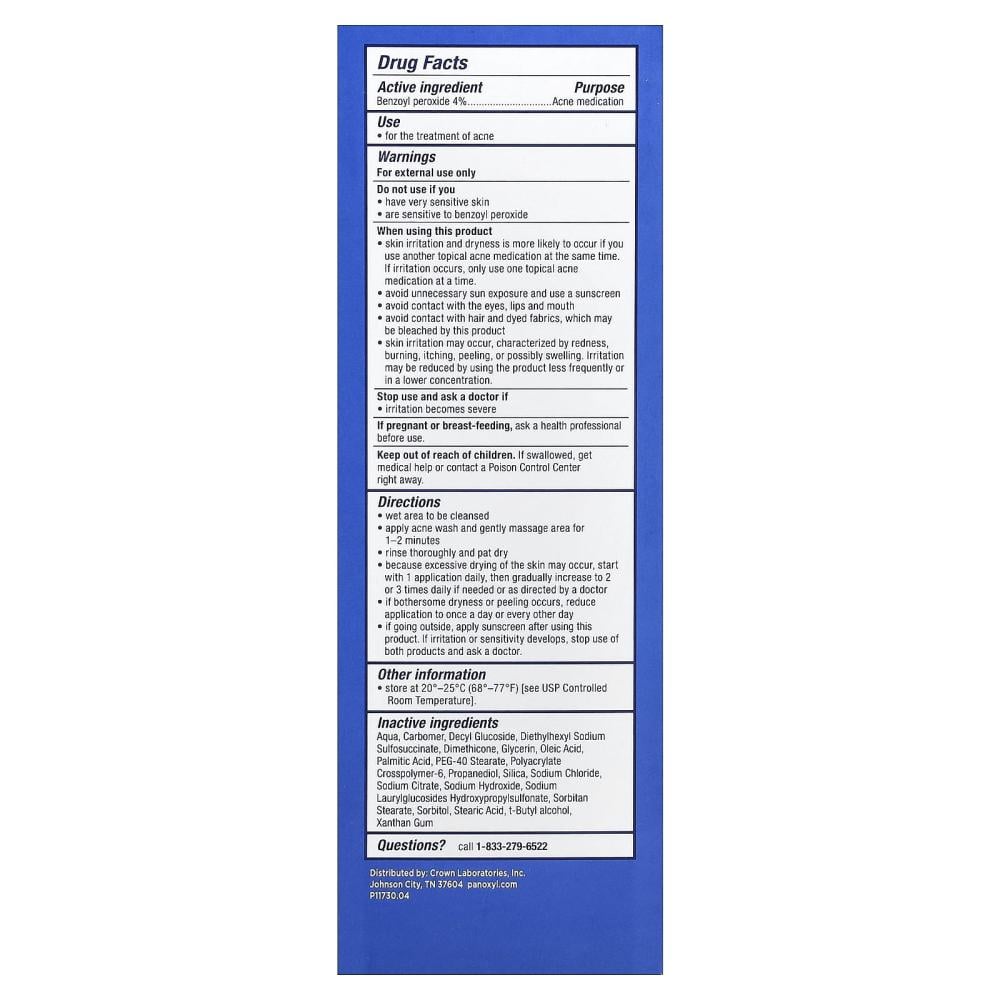 غسول الوجه الرغوي لحب الشباب ذو القوة القصوى من بانوكسيل، يحتوي على 4% بيروكسيد البنزويل. غسول رغوي بأقصى قوة. يخترق المسام بشكل فعال ويقتل البكتيريا المسببة لحب الشباب. يزيل عيوب حب الشباب الموجودة ويمنع ظهور عيوب جديدة. أعلى قوة من البنزويل بيروكسايد متاحة بدون وصفة طبية. يزيل الأوساخ والزيوت الزائدة بلطف لتنظيف المسام وفتحها. يجعله خيارًا ممتازًا لإدارة حب الشباب على الوجه والصدر والظهر.