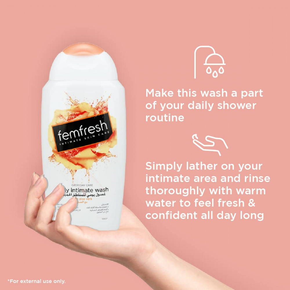 غسول منعش خالي من الصابون وغني بالصبار، تم تحضيره خصيصاً ليعطي انتعاشاً "يدوم طويلا"، بينما يُلطف الجلد في المناطق الحميمة، ويساعد أيضاً على الحفاظ على pH صحي.