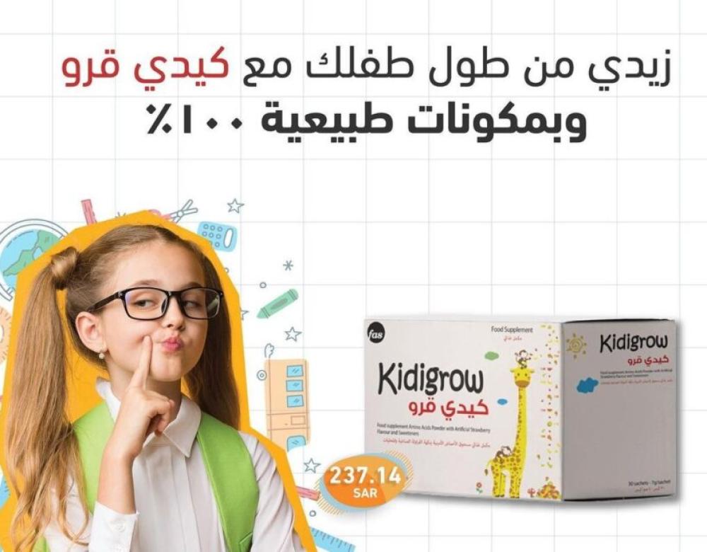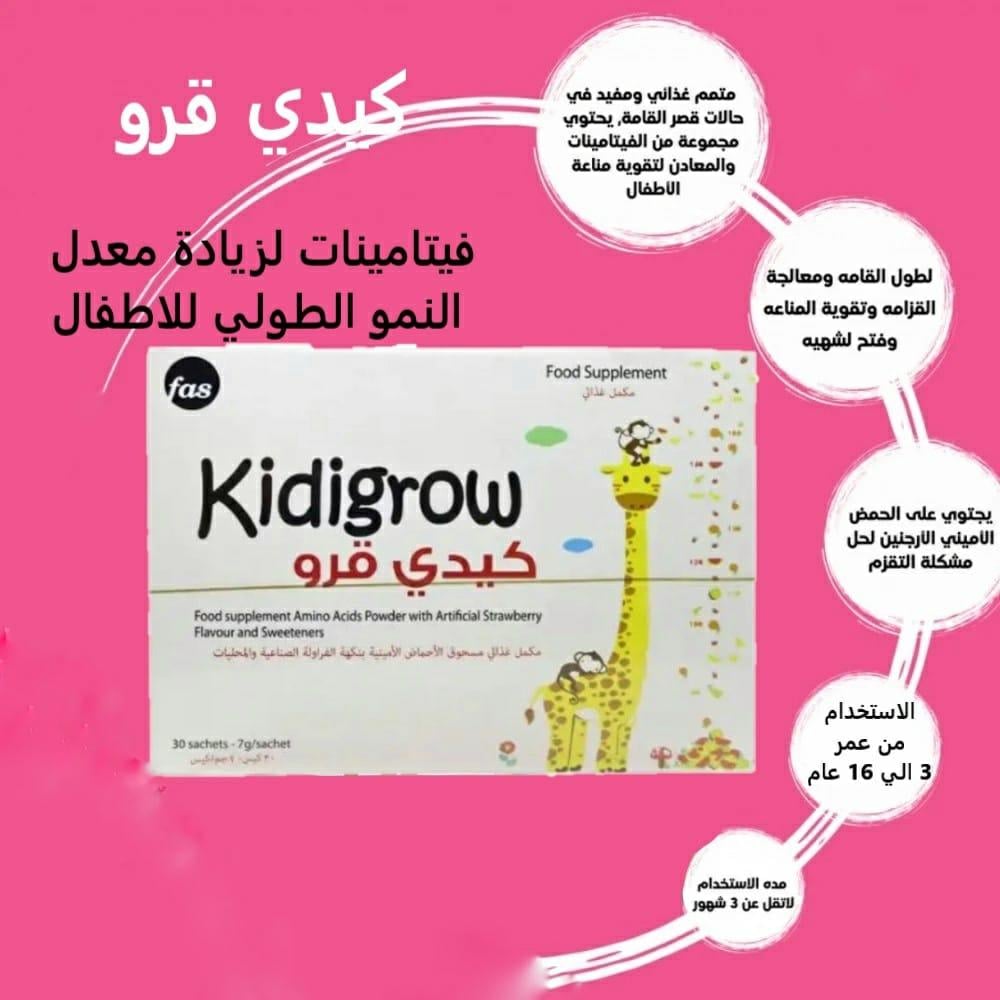 - كيديجرو هو منتج على هيئة مسحوق يحتوي على مزيج فريد من الأحماض الأمينية الأساسية الجاهزة للامتصاص وليس في شكل بروتين معقد وذلك لزيادة معدل نمو الطول عند الأطفال.