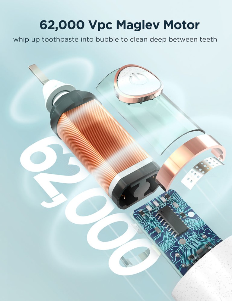 أفضل فرشاة أسنان كهربائية لدينا على الإطلاق، Fairywill P11، توفر لك مظهرًا رائعًا وأداءً لا يهزم. يتميز بحلقة ذهبية اللون تجمع بين التصميم الجريء والبنية القوية، وقد حصل P11 على جائزة Red Dot الفائز لعام 2020. يتيح لك المظهر المبسط الاستمتاع بتنظيف الأسنان في الحياة اليومية. يوفر الجيل الثالث من محرك Maglev الرائد في الصناعة 62000 حركة فرشاة في كل دورة، مما يزيل البقع بشكل فعال ويحسن صحة خط اللثة.