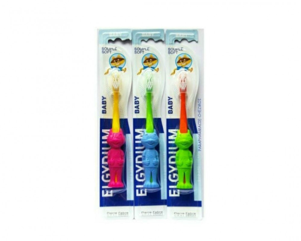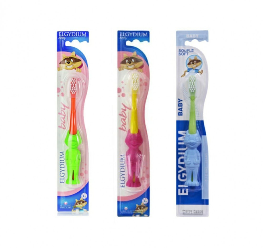 فرشاة أسنان ELGYDIUM BABY مخصصة للأطفال الذين تتراوح أعمارهم بين 0 و 2 سنة.