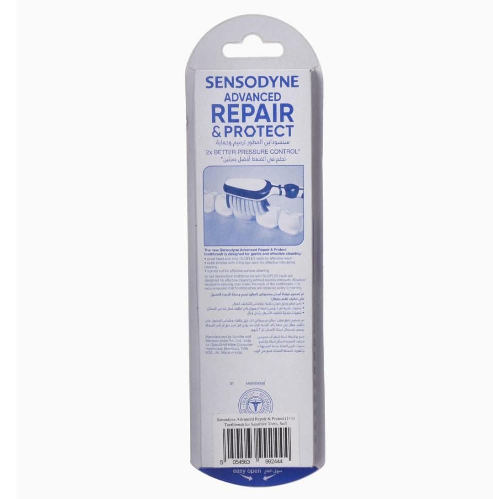تم تصميم فرشاة الأسنان المتقدمة من سنسوداين للإصلاح والحماية للأشخاص ذوي الأسنان الحساسة. شعيرات ناعمة لتنظيفٍ لطيف. تتميز برأس بزاوية صغيرة وشعيرات خارجية ناعمة وشعيرات ملتوية داخلية للمساعدة في الحماية من الإفراط في الغسل بالفرشاة.