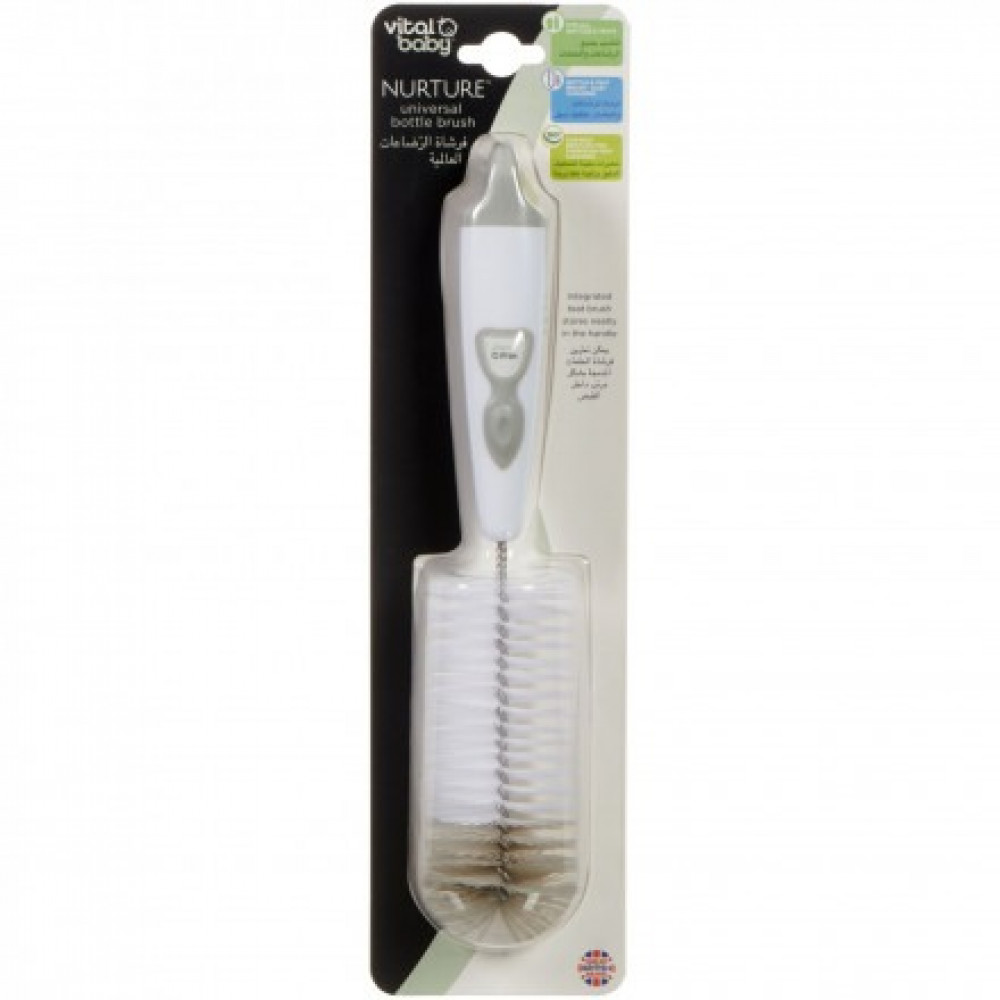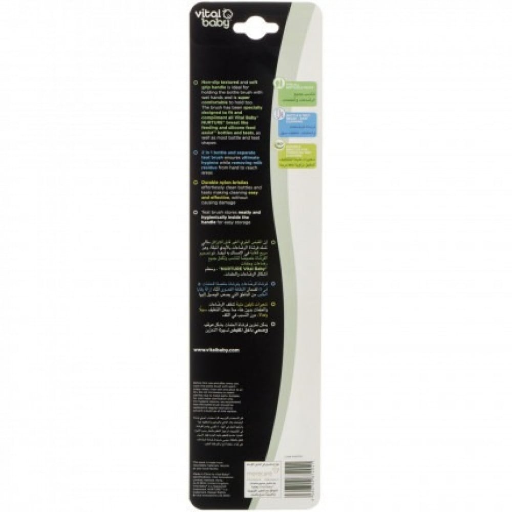 فرشاة تنظيف الرضّاعة نيرتشر من فيتال بيبي تساعد في العناية وحماية الرضّاعات والحلمات من التلف أثناء التنظيف. تتمتع بمقبض مريح للمسك ومرن وضد الانزلاق لضمان النظافة المُثلى عند إزالة بقايا الحليب من المناطق الصعب الوصول إليها، حجم مناسب لجميع الرضّاعات والحلمات.