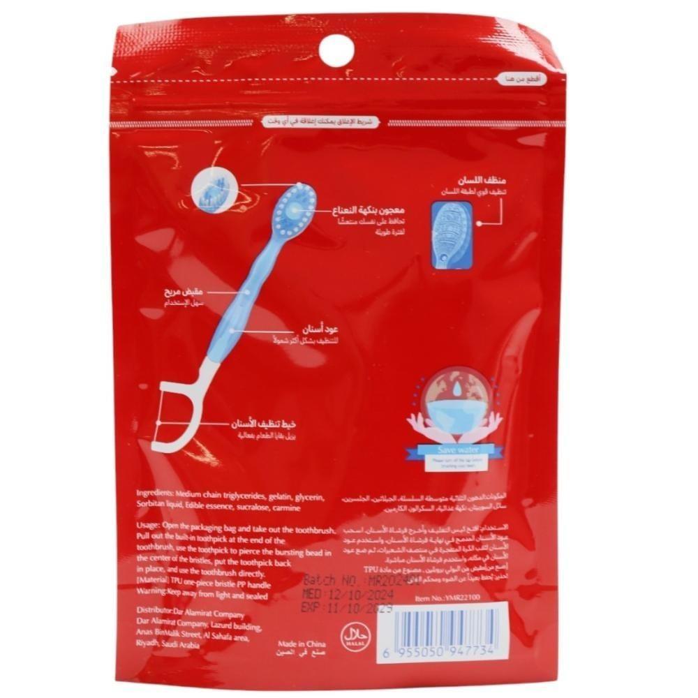5 في 1: فرشاة أسنان مع معجون مدمج وخيط تنظيف لضمان نظافة كاملة.