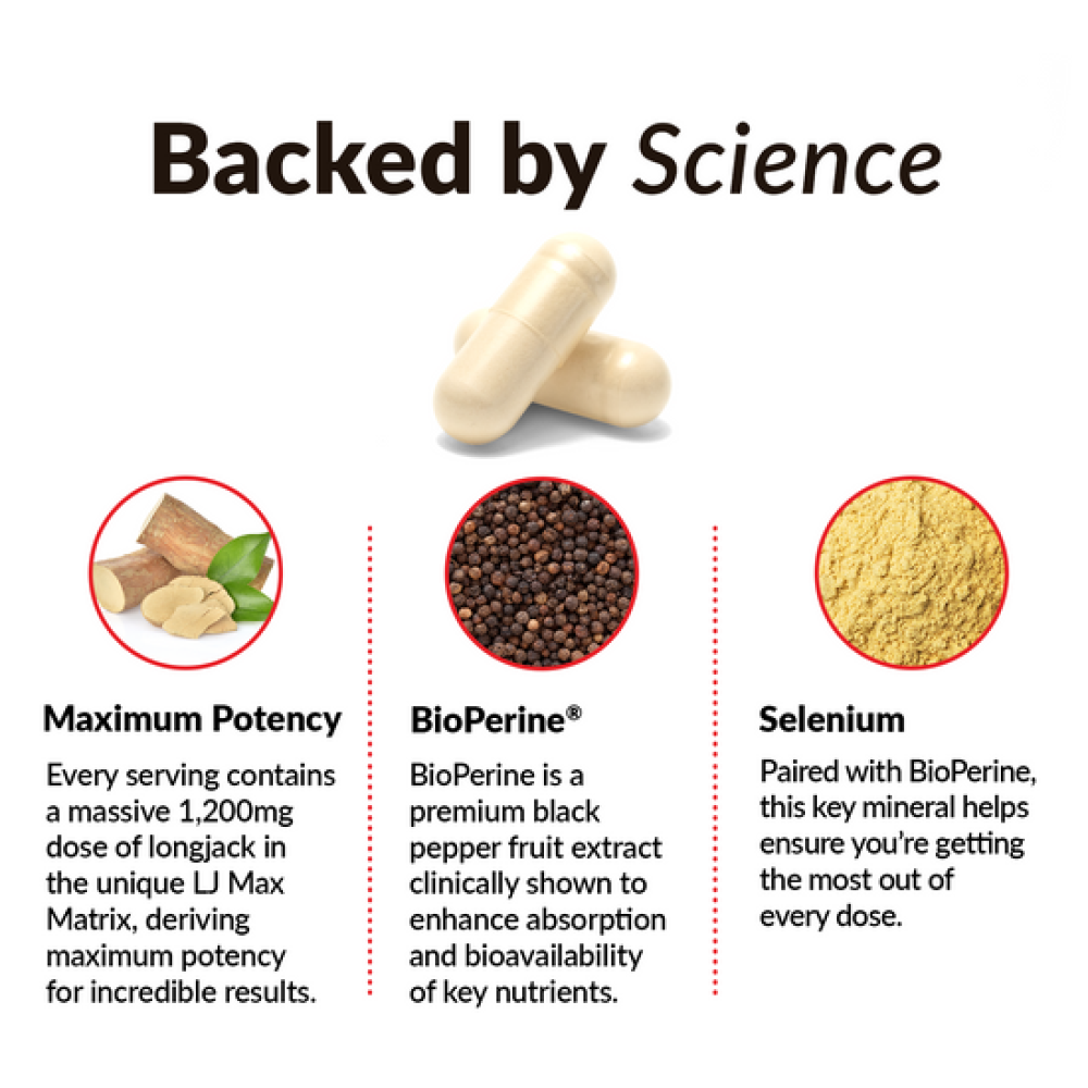 يقدم Force Factor ® Longjack Tongkat Ali Max جرعة هائلة تبلغ 1200 مجم من هذه العشبة القديمة في مصفوفة LJ Max القوية. تحتوي كل جرعة على مستخلص Longjack Tongkat Ali الممتاز، والذي يستخدمه أجيال من الرجال لإشعال حيويتهم لتحقيق أقصى قدر من النتائج في غرفة النوم وخارجها.