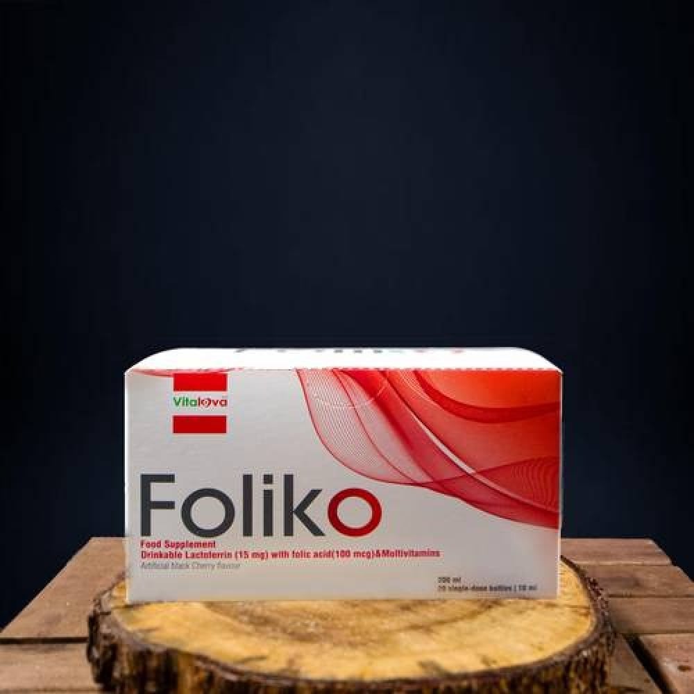 يحتوي المكمل الغذائي فوليكو على لاكتوفرين وفوليك اسيد مع مجموعة فيتامين ب وفيتامين سي والزنك.