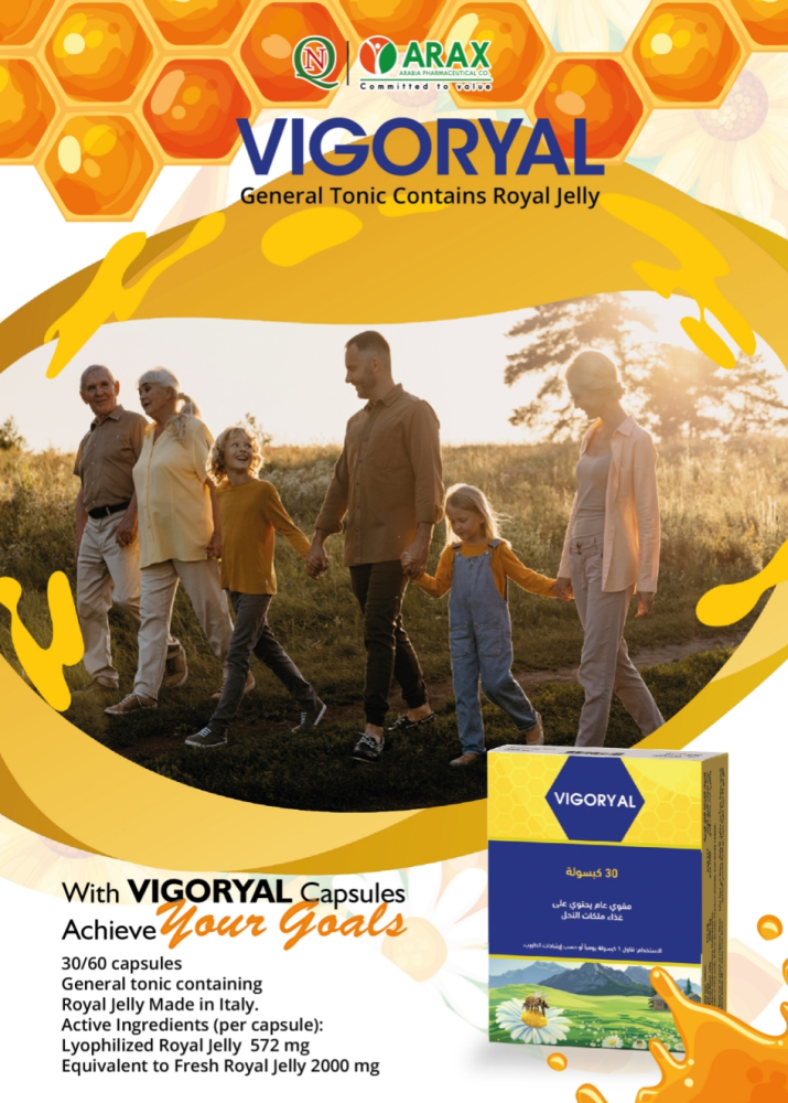 فيجوريال (30 كبسولة) – Vigoryal هو كبسولات تحتوى على اعلى تركيز من غذاء ملكات النحل صناعة اسبانية لزيادة طاقة الجسم و التركيز و تقليل التعب و الاجهاد بالإضافة لتحسين الصحة الجنسية و الإنجابية و الانتصاب و لتاخير اعراض الشيخوخة و لتحسين صحة القلب و تقليل مخاطر مرض السكرى و تعزز من ترطيب العيون و دعم صحة العقل و الذاكرة و تقوية العظام.