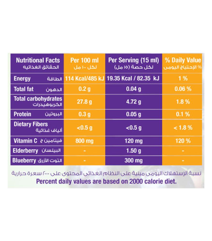 فيتامين سي 120 مجم مع عسل الزهور البرية 150 مللي (خال من الغلوتين والجلوكوز واللاكتوز) مع محلي الفركتوز الطبيعي
