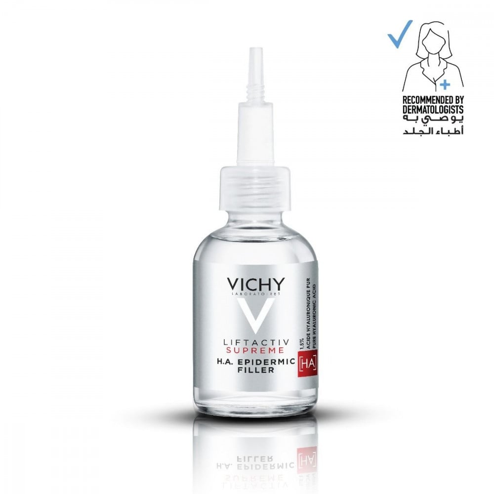 - فيشي ليفت اكتيف سوبريم A فيلر يحتوي على جرعة مكثفة من حمض الهيالورونيك النقي 1.5٪ الذي يقلل من ظهور علامات التجاعيد والخطوط الرفيعة على البشرة.