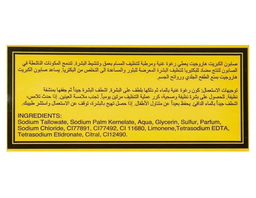 صابون الكبريت من هاروجيت قوي ومنعش ومصنوع من مياه السبا من ينابيع هاروغيت الطبيعية. مثل جميع أنواع الصابون لدينا، لم يتم اختباره على الحيوانات وهو غني بفيتامين E والمركبات الأخرى المغذية للبشرة. صابون كبريت طبي خفيف للبشرة يحتوي على روائح لطيفة ومنعشة تدوم طويلاً وهو الحل الأفضل للبشرة الناعمة.