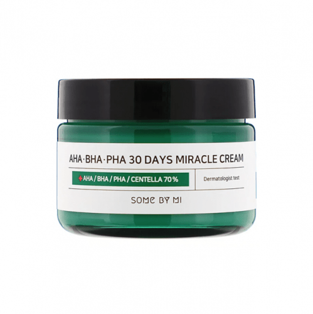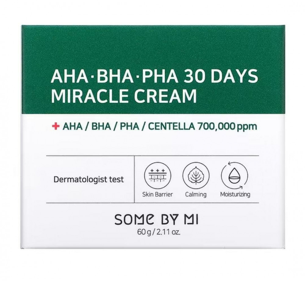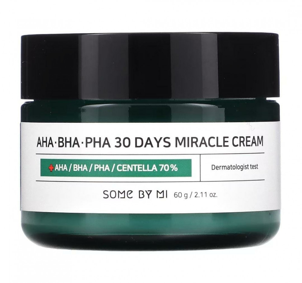 كريم مرمم للبشرة التي تعاني من مشاكل البشرة Some By Mi AHA-BHA-PHA 30 Days Miracle Cream. سيساعد المنتج على تحويل بشرتك في 30 يومًا فقط! الكريم مصمم خصيصًا للبشرة الدهنية والمختلطة المعرضة للعيوب. مع الاستخدام المنتظم ، يعالج حب الشباب والالتهابات ويمنع ظهورها مرة أخرى ويقلل من حجم المسام ويعزز تجديد البشرة. المنتج ينظم عمل الغدد الدهنية ، يلمع الجلد تمامًا ، ويخفف الاحمرار ويزيل الاحتقان.