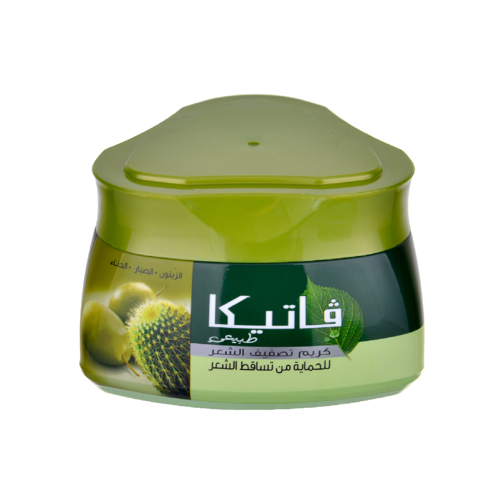 فاتيكا كريم تصفيف الشعر لتساقط الشعر بخلاصة زيت الزيتون والصبار والحناء يعمل علي تقوية بصيلات الشعر ويحميه من الضعف والتساقط ويحافظ عليه اكثر قوة وانسيابية.
