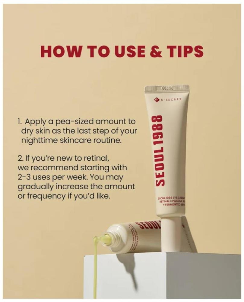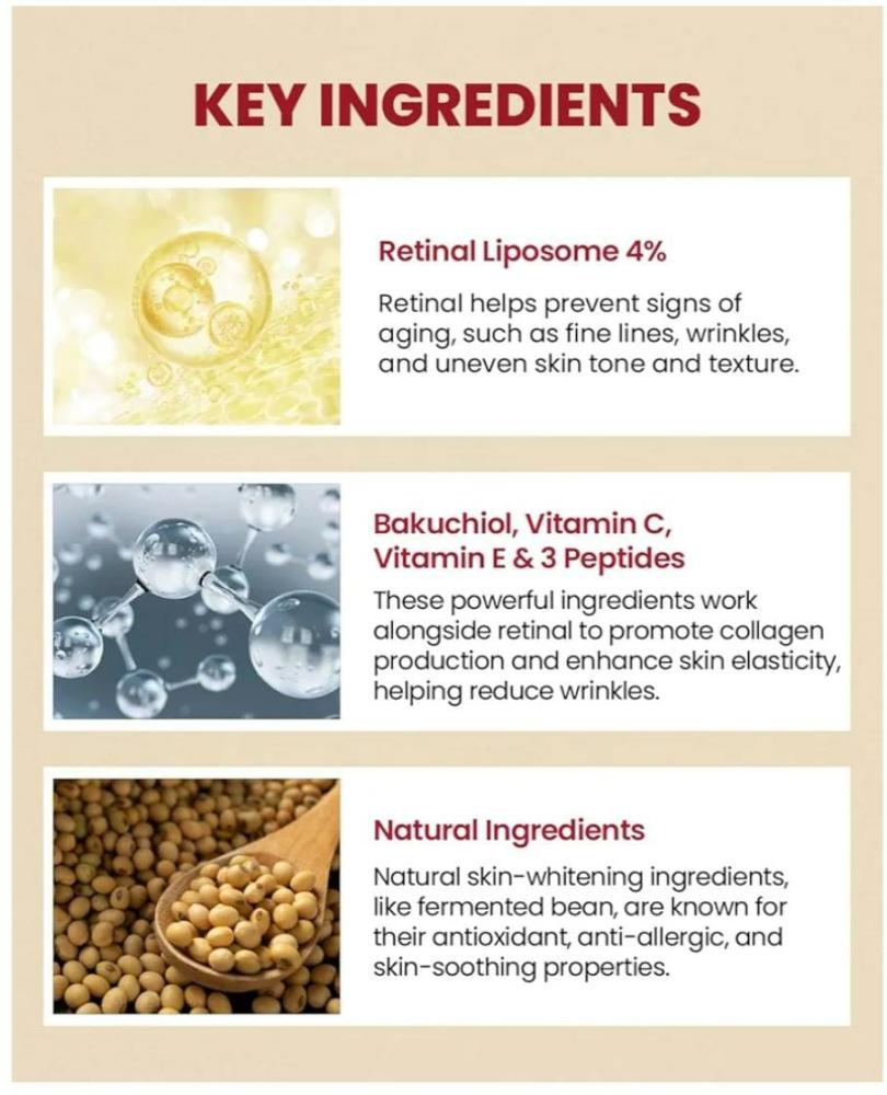 - يقلل بشكل واضح من التجاعيد وينشط منطقة العين مع 4% من شبكية العين الدهنية