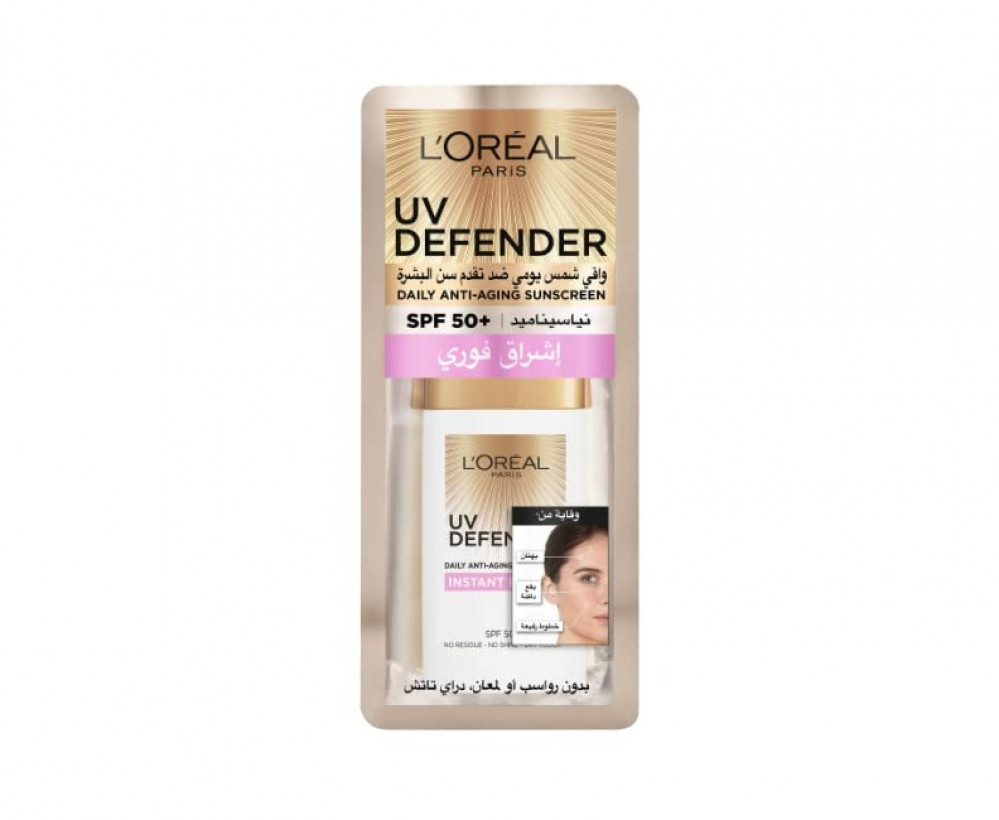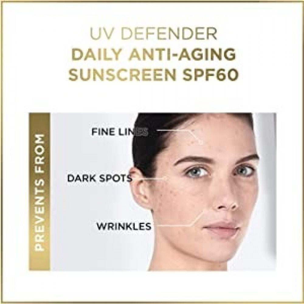 اكتشفي واقي الشمس يو في ديفندر بعامل حماية 50+ والمفتح للبشرة والمضاد لعلامات التقدم في السن من لوريال باريس والذي يمنع تكون البقع الداكنة والبهتان والتجاعيد. يوقف تقدم عمر البشرة لمدة 5 سنوات خلال 6 أشهر من الاستخدام. كريم يو في ديفندر SPF 50+ الواقي من الشمس والمرطب والمضاد للشيخوخة حيث يقي من الشيخوخة 5 سنوات من خلال استخدام 6 شهور فقط - يمنع تكون الخطوط الدقيقة والبقع الداكنة والتجاعيد - مع النياسينميد النقي: الأفضل لتفتيح البشرة - تتميز التركيبة غير الزيتية والمفتحة للبشرة بحماية واسعة الطيف ضد الأشعة فوق البنفسجية فئة ايه وبي.