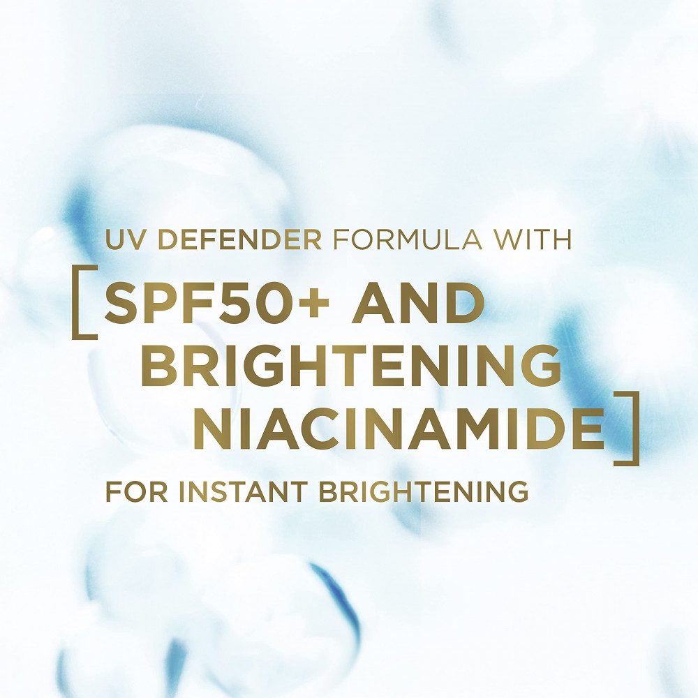 تركيبة للحماية من الأشعة فوق البنفسجية تتكون من [عامل حماية من أشعة الشمس 50+ ومكون نياسيناميد لتوريد الوجه] لإشراقة فورية