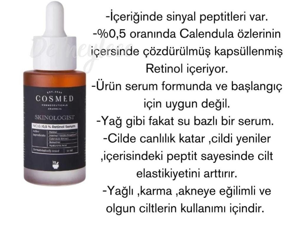 سيروم ينظم الزيوت ويساعد في تجديد البشرة، مصمم خصيصًا للاستخدام على البشرة الدهنية، والمختلطة، والمعرضة لحب الشباب، أو الناضجة. يمنع البشرة من إنتاج الدهون. وهو يزيد من مرونة البشرة بفضل احتوائه على الببتيدات. الريتينول بصيغة مُغلفة يسبب آثارًا جانبية أقل من حمض الريتينويك وغيره من أشكال الريتينول النقي. فهو يجعل البشرة أقل تجاعيد، ناعمة، ومشدودة. كما يمكن استخدامه للبشرة المعرضة لحب الشباب الاستخدام: سيروم طريقة الاستخدام: على بشرة نظيفة , ضعي 2-3 قطرات من السيروم و دلكي بلطف ثم ضعي مرطب بعده مساء فقط الحجم: 30 مل التحذيرات و الاحتياطات: ننصحك باستشارة الصيدلانية / أخصائية البشرة في حال كنتِ تستخدمين منتجات أخرى، تجنباً لحدوث تداخل بين المواد ينصح بالقيام باختبار الحساسية قبل البدء باستخدام المنتج يحتوي المنتج على أحماض مقشرة تزيد من حساسية البشرة للشمس لذلك يجب الحرص على استخدام الواقي الشمسي و تجديده لتجنب تهيج البشرة هذا المنتج غير مناسب للنساء الحوامل والمرضعات. هذا المنتج يحتوي على مكونات قد تكون غير مناسبة للنساء الحوامل والمرضعات. ننصح بعدم استخدامه أثناء فترة الحمل أو الإرضاع لتجنب أي مخاطر محتملة للصحة. إذا كنتي حاملاً أو مرضعة، يُفضل دائمًا استشارة الطبيب أو محترف الرعاية الصحية قبل استخدام منتجات جلدية أو تجميلية. المكونات الاساسية: ريتينول, ببتيدات, نياسيناميد, بانتينول خالي من العطور و الكحول و البارابين و الزيوت بلد التصنيع: تركيا