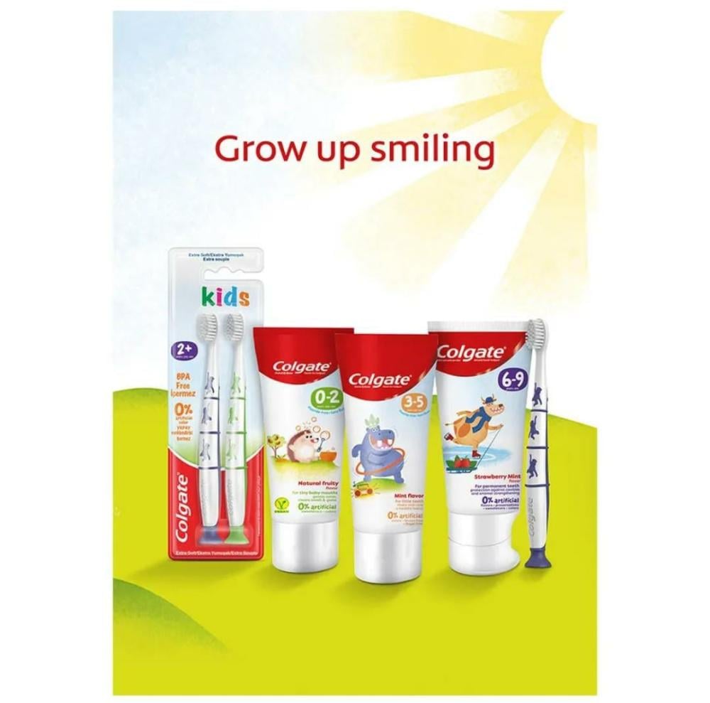 فرشاة أسنان كولجيت كيدز خالية من مادة BPA، مصممة خصيصًا للأطفال بعمر عامين فما فوق، لتشجيع تنظيف الأسنان بالفرشاة وبناء الثقة في نظافة الفم. تحتوي القاعدة على كوب شفط مدمج للتخزين المستقيم السهل والممتع. المقبض يناسب أيدي البالغين لمساعدة الأطفال في تنظيف الأسنان بالفرشاة والشعيرات ناعمة للغاية للتنظيف اللطيف. يكبر مبتسما! يرجى ملاحظة أن اللون/التصميم قد يختلف حسب توفر المنتج.