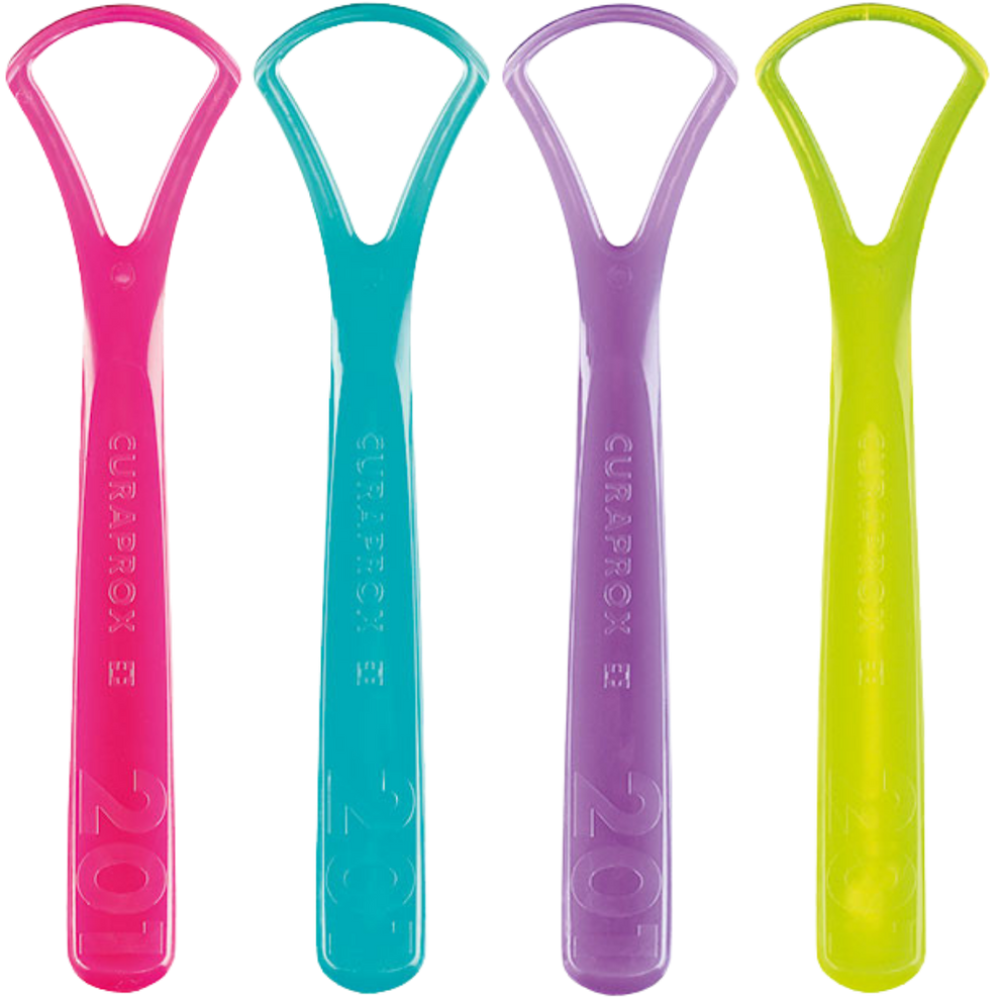 مكونه من شفرتان واحدة ناعمة والأخرى مسننة تعملان معاً لإزالة البكتيريا التي تتراكم على اللسان تماماً